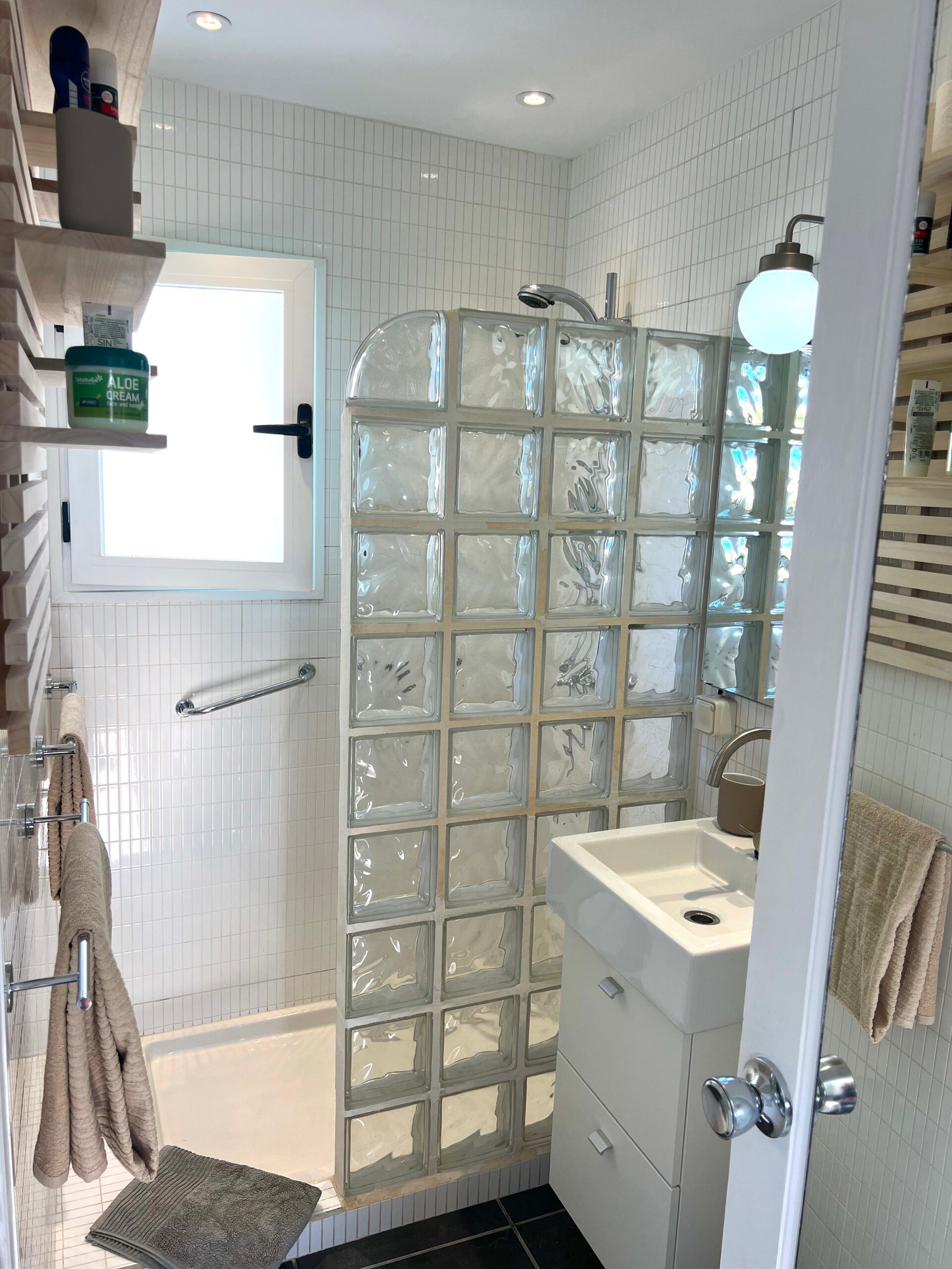 - Bad mit WC, Waschbecken, Dusche, Föhn. 50L Warmwasserboiler (Üblich dort 10-20 Liter)